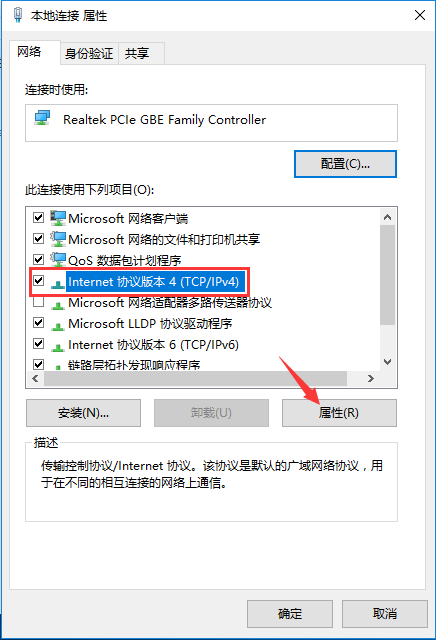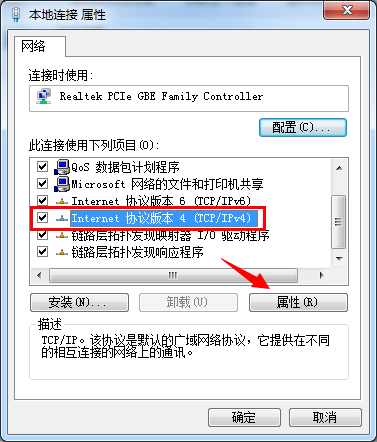 4、打开属性对话框,我们选择“Internet协议版本4(TCP/IPv4)”,然后点击属性按钮。