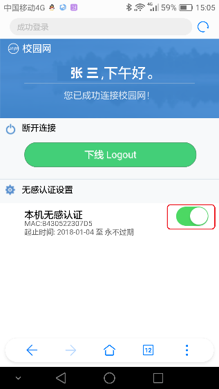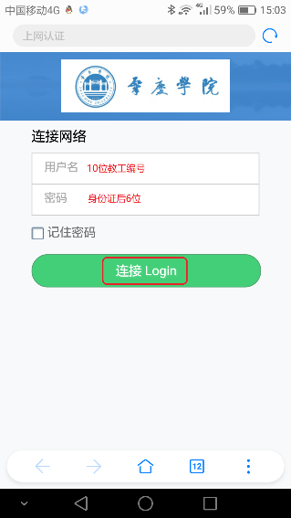 注意:若未自动弹出登陆页面,则在ZQU-WebAuth信号成功连接之后,打开手机浏览器访问任意网页(如:http://www.zqu.edu.cn),即可弹出登陆页面。