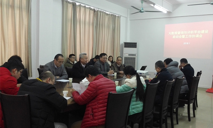 会上,盘炜生主任介绍了项目建设背景。王忠副校长强调了大数据查询与分析平台建设的目标和重要性,要求各业务部门通力合作,按时按质完成项目建设。项目研发团队负责人介绍了项目实施计划和工作要点。华南理工大学齐德昱教授对本项目提出了宝贵建议。